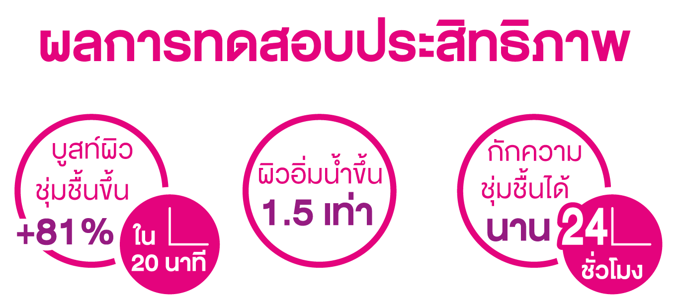 ช่วยให้ผิวเนียนนุ่ม ช่วยเพิ่มความยืดหยุ่น ชุ่มชื้นในทุกชั้นผิว ลดการสูญเสียน้ำในชั้นผิว เสริมเกราะป้องกันผิว