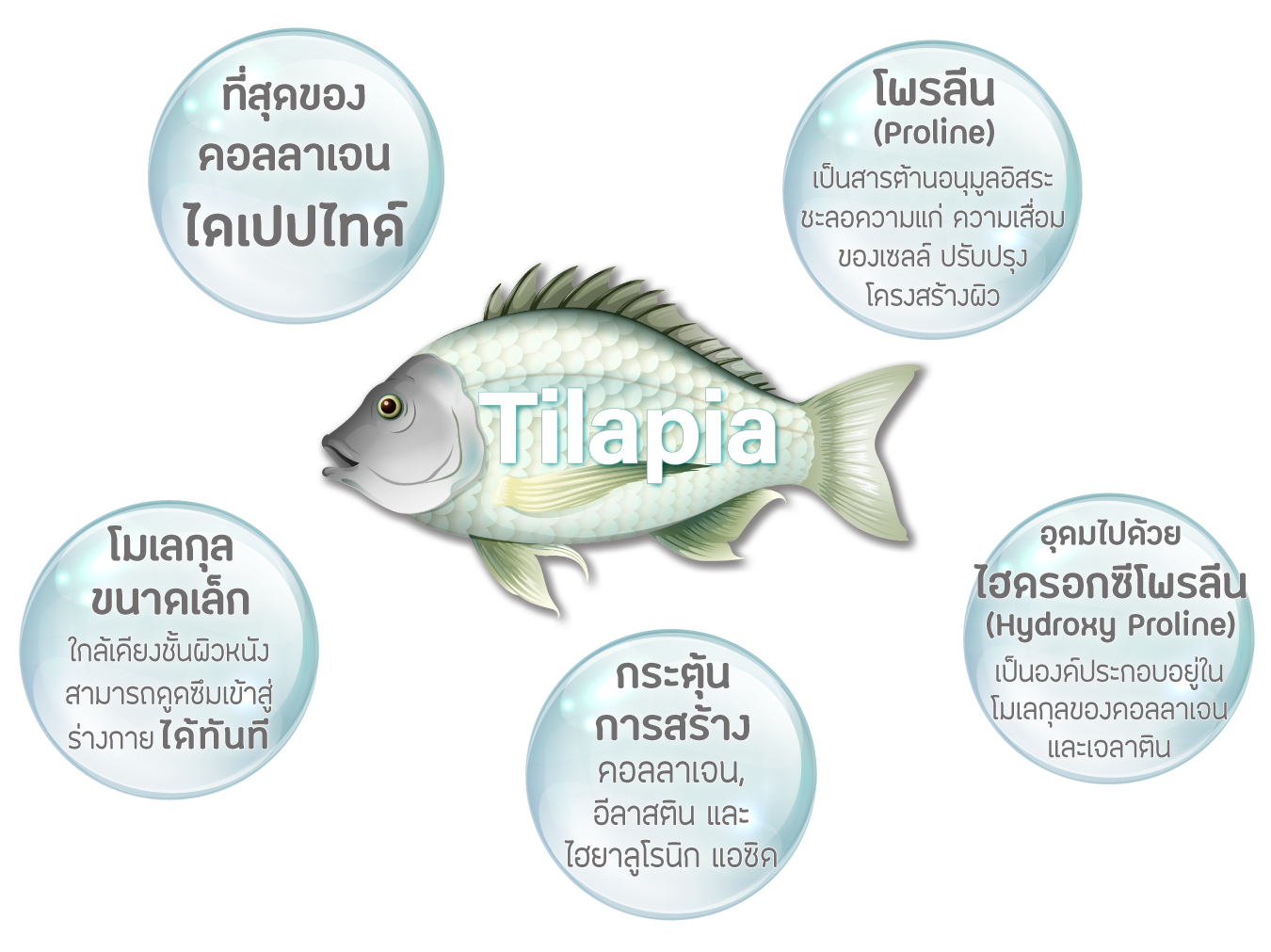 เป็นคอลลาเจนสกัดจาก ปลานํ้าจืดสายพันธ์ุธีราเพียร์ (Tilapia) ที่อุดมไปด้วยปริมาณ โพรลีน (Proline) และ ไฮดรอกซีโพรลีน (Hydroxy Proline) สูงมากกว่าคอลลาเจนที่สกัดปลาทะเลทั่วไปที่นิยมกันในปัจจุบัน และยังมีโครงสร้างโมเลกุลขนาดเล็กใกล้เคียงกับคอลลาเจนใต้ชั้นผิวของเรามากที่สุด ทำให้มีประสิทธิภาพในการดูดซึมเข้าสู่ร่างกายได้ทันที มีงานวิจัยรองรับมากมาย ช่วยกระตุ้นการสร้างคอลลาเจน อีลาสติน และ ไฮยาลูโรนิก แอซิด ในร่างกายได้มากกว่าคอลลาเจนไตรเปปไทด์ และคอลลาเจนทั่วไป ช่วยทำให้ผิวเนียนนุ่มชุ่มชื้น แลดูอ่อนวัย ได้มากกว่า อีกทั้งยังช่วยดูแลทั้งในเรื่องผิว ผม เล็บ กระดูกและข้อต่ออีกด้วย
